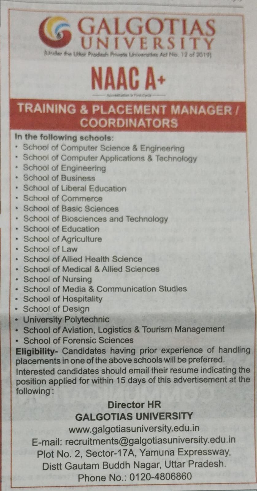 Adv. Training & Placement manager, coordinatiors